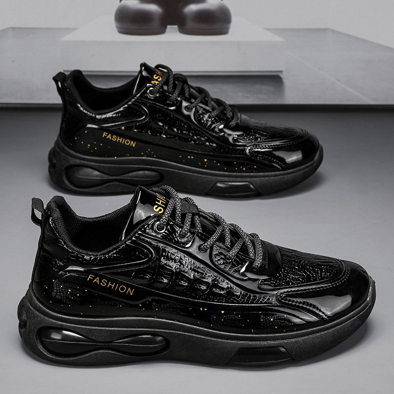 Pantofi de piele lac pentru bărbați cu tălpi joase.